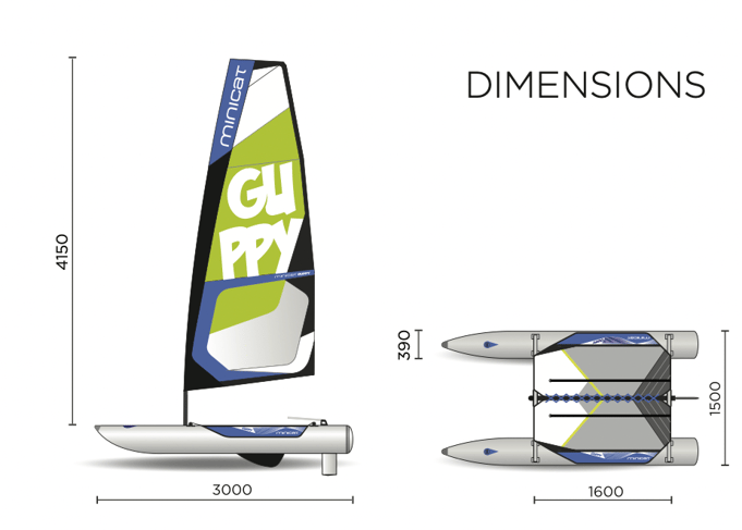 Ausgelegt ist der Guppy für 1 maximal 2 Personen, bei einer Länge von nur 3m und einer Segelfläche von 4.5m2.